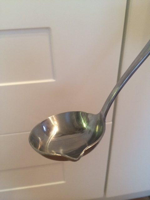 5. Heat some sunflower or groundnut oil in a frying pan over a medium high heat. Add a spoonful of batter. Because it’s a thick and sticky mixture, you’ll need to shape and form it a bit in the pan. I find this sort of ladle really helpful: