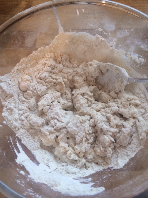 3. Mix the milk and yoghurt with the egg replacer and Flaxseed, and stir into the flour.